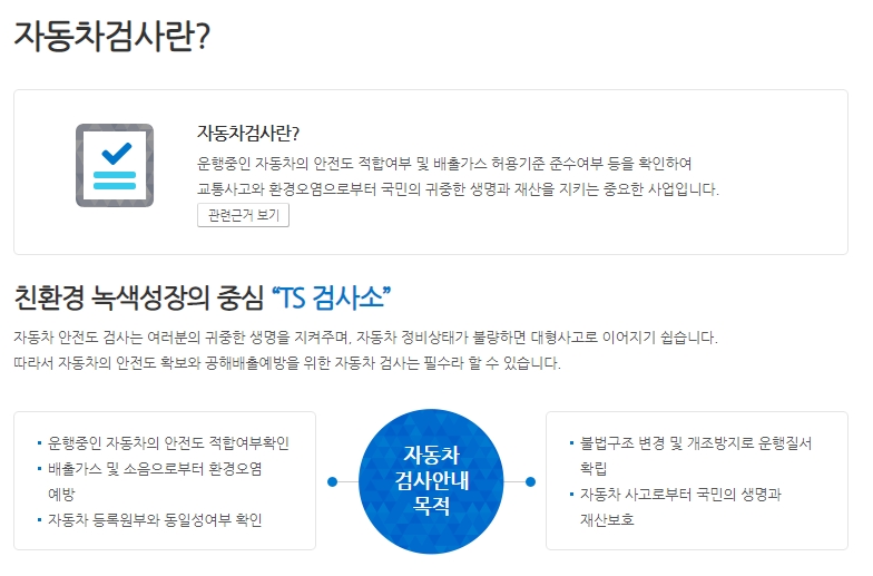 그렇다면 이런 자동차 검삭 예약을 하기 위한 공식 사이트와 제도를 확인 할 수 있는 URL 정보를 공유드립니다. TS한국교통안전공단이 해당 사이트 입니다.