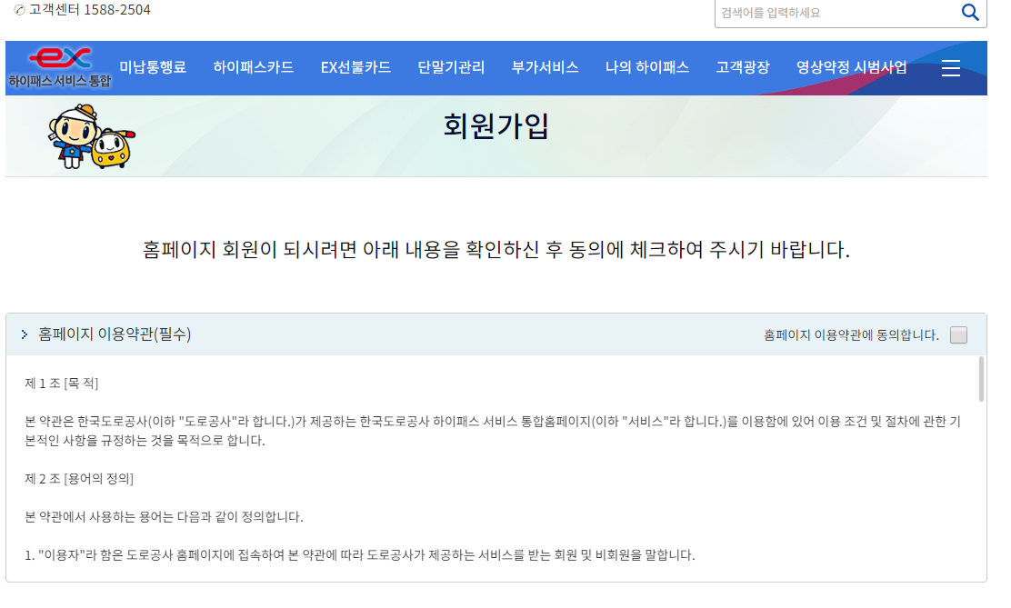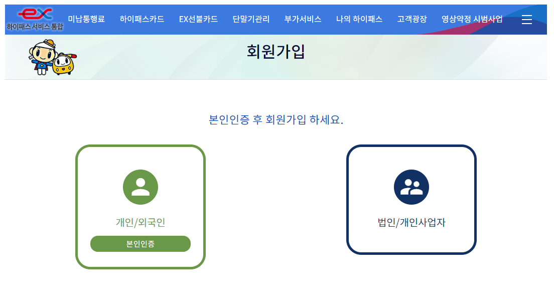 해당 홈페이지에 접속하시면 다음과 같은 메인 화면이 노출됩니다. 그리고 하이패스 영수증 출력을 하기 위해서는 회원가입 절차가 필수적이기 때문에 해당 단계를 수행해주셔야 합니다.