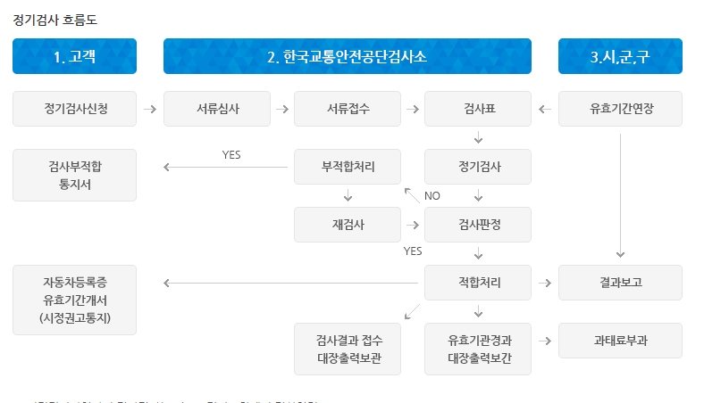 이용하는 자동차의 안전도 적합여부와 배출가스 허용 기준을 확인하기 위한 절차입니다. 주기적인 자동차 검사로 인해서, 자동차 안전과 함께 환영오염까지 챙길 수 있도록 하기 위한 제도입니다.